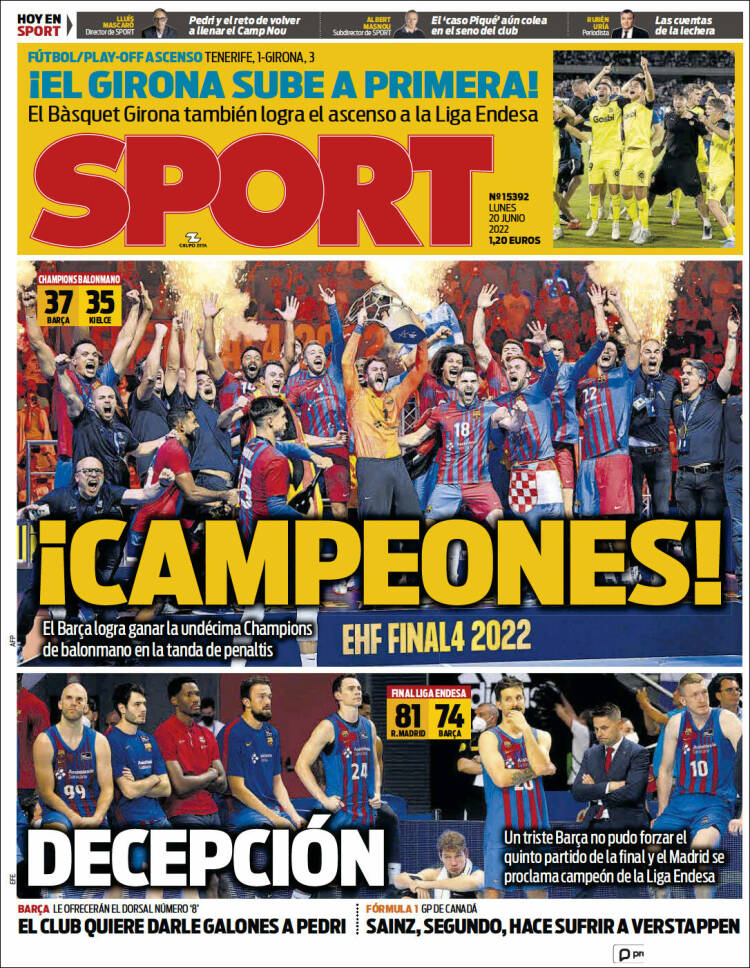 „Barcelona“ krepšinio komanda sekmadienį prarado Ispanijos čempionės vardą. Tačiau Barselonos žiniasklaida dėl to daug ašarų neliejo, nes tą patį vakarą katalonus nudžiugino kita „mėlyna-granatinė“ komanda – rankininkai tapo Čempionų lygos nugalėtojais. Maža to, Žironos miesto futbolo ir krepšinio komandos sekmadienį iškovojo kelialapius į Ispanijos aukščiausiąją pakopą.