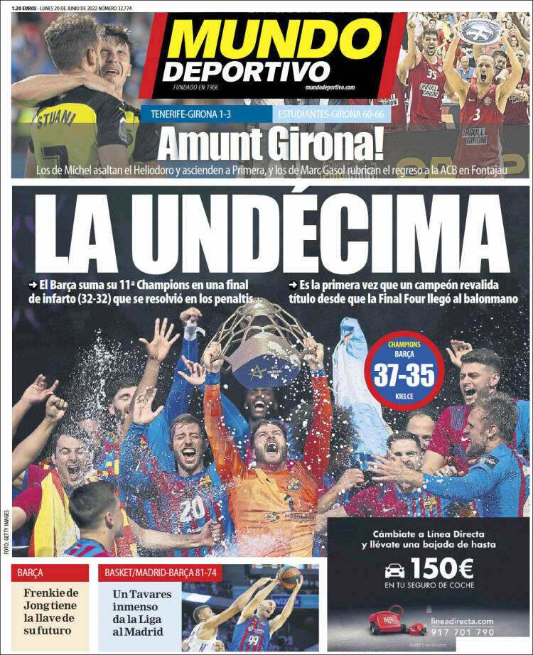 „El Mundo Deportivo“ prie didelės taurę laikančių rankininkų nuotraukos parašė žodį „Vienuoliktas“. „Barça“ iškovojo 11-ąjį titulą infarktiniame finale, kurio baigtis buvo nulemta baudinių serijoje“, – paantraštėje paaiškino „El Mundo Deportivo“.