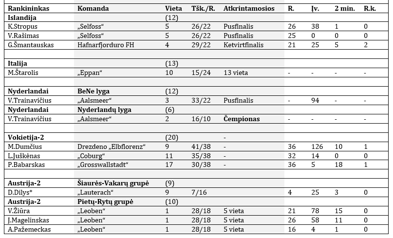 Nacionalinėmis čempionėmis šiais metais tapo dvi lietuvių komandos, bet Lietuvos rankininkai auksą iškovojo gana silpnose lygose. Romas Kirveliavičius iš „Krems“ pasiekė pergalingą finišą Austrijos lygoje, Vaidas Trainavičius iš „Aalsmeer“ – Nyderlandų lygoje.