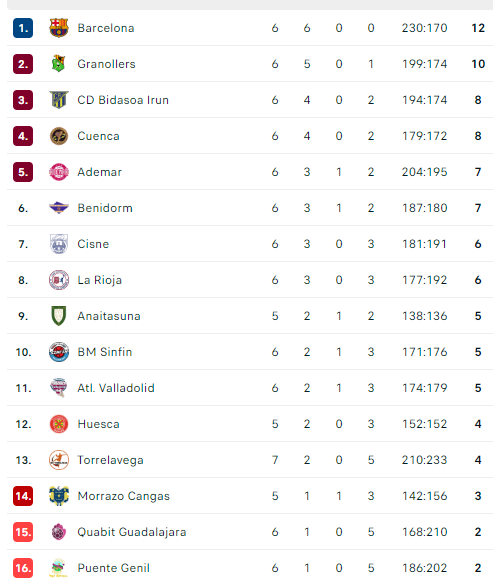 Pirmauja: „Barcelona“ – 12, „Fraikin“ – 10, „Bidasoa“, „Cuenca“ – po 8, „Ademar“, „Benidorm“ – po 7.