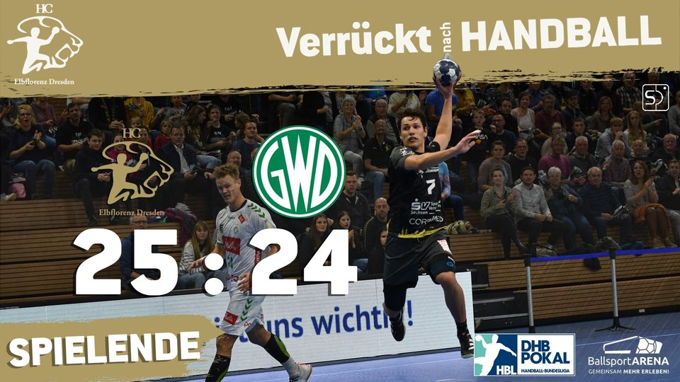 Drezdeno rankininkai nugalėjo pirmosios bundeslygos klubą ir įsiveržė į Vokietijos taurės aštuntfinalį. „Elbflorenz“ beveik visą laiką pirmavo, o antrajame kėlinyje įgijo net keturių įvarčių persvarą 20:16. Vis dėlto varžovai sugebėjo pavyti ir Drezdeno komandos pergalę nulėmė likus žaisti pusę minutės įmestas baudinys bei patikimas žaidimas ginantis nuo paskutinės Mindeno ekipos atakos.