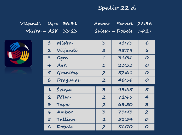 | Baudiniai | 5 – Citko, Amber (su Põlva) | 6 – Sillaste, Põlva (su Dobele) |