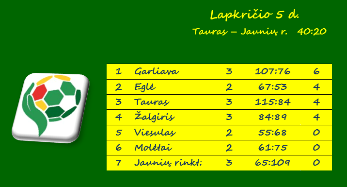 Vilniaus „Tauras“ – Jaunių rinktinė 40:20 (17:12).
