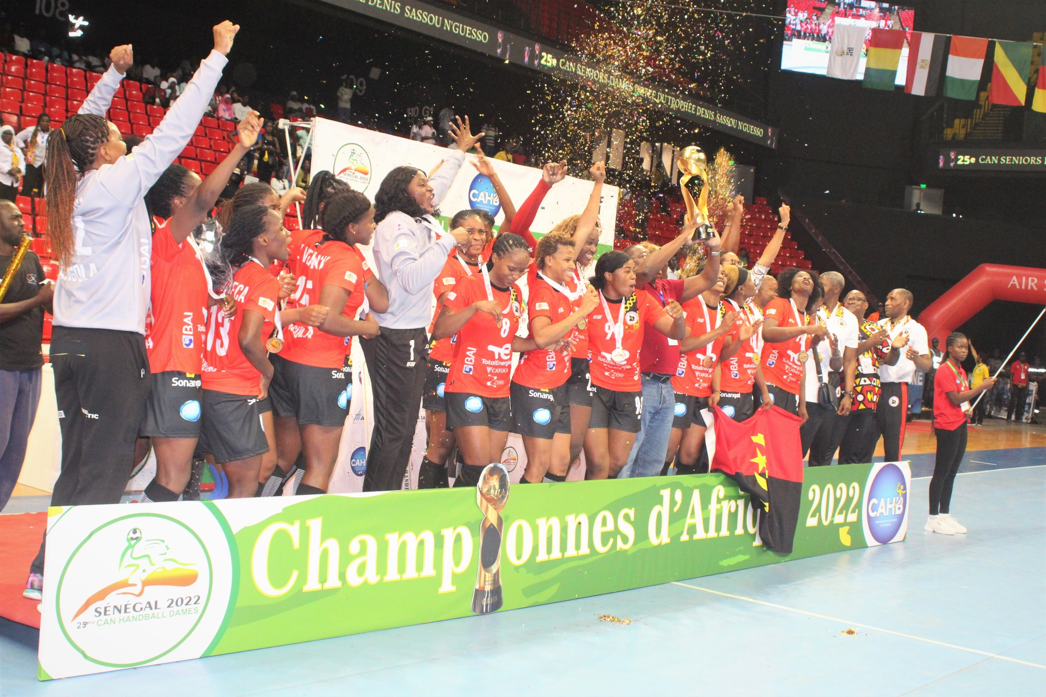 Dakare pasibaigusiose Afrikos pirmenybėse čempionės vardą apgynė Angolos rinktinė, finale įtikinamai įveikusi Kamerūno komandą 29:19 (13:10).