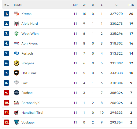Pirmauja: „Krems“ – 20, „Alpla“ – 19, „Insignis“ – 17, „Fivers“ – 16, „Ferlach“ – 14.
