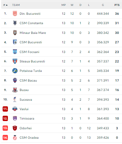 Pirmauja: „Dinamo“ – 36, „Constanta“ – 31, „Minaur“ – 30, Bukarešto CSM – 27, … „Buzău“ – 16.