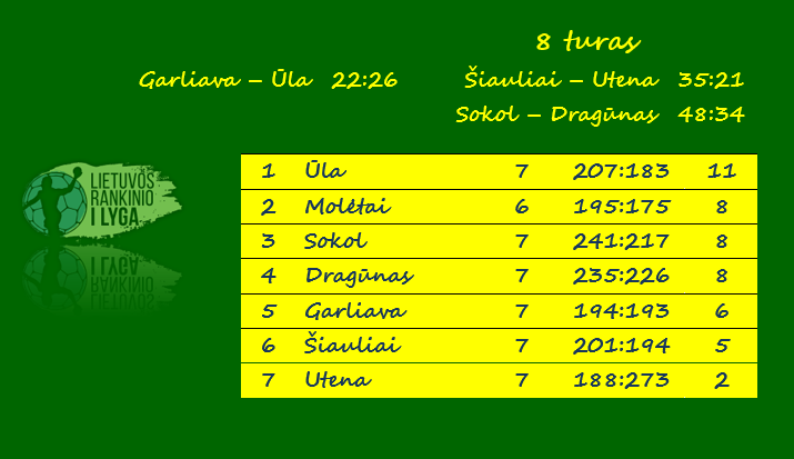 Penktadienį vykusiose rungtynėse lygos lyderė Varėnos „Ūla“ išvykoje nugalėjo „Garliavą“ 26:22 (13:12).