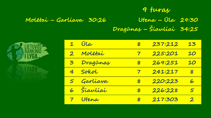 „Molėtai“ – „Garliava“ 30:26 (14:14). Agurkis 10, Simėnas 3 / Rameikis 7, Varaškevičius 6.