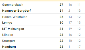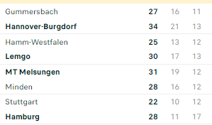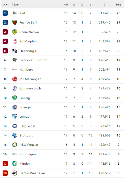 Pirmauja: „Kiel“ – 28, „Füchse“ – 27, „Rhein-Neckar“ – 25, „Magdeburg“ – 23, „Flensburg“ – 22, „Hannover“, „Hamburg“ – po 19, „Melsungen“ – 18.