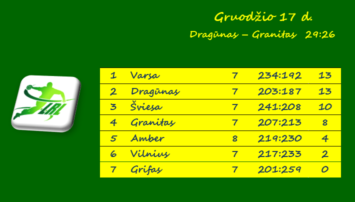 „Dragūno“ ir „Granito“ rungtynių rezultatas taip pat įrašytas ir į Baltijos lygos lentelę.