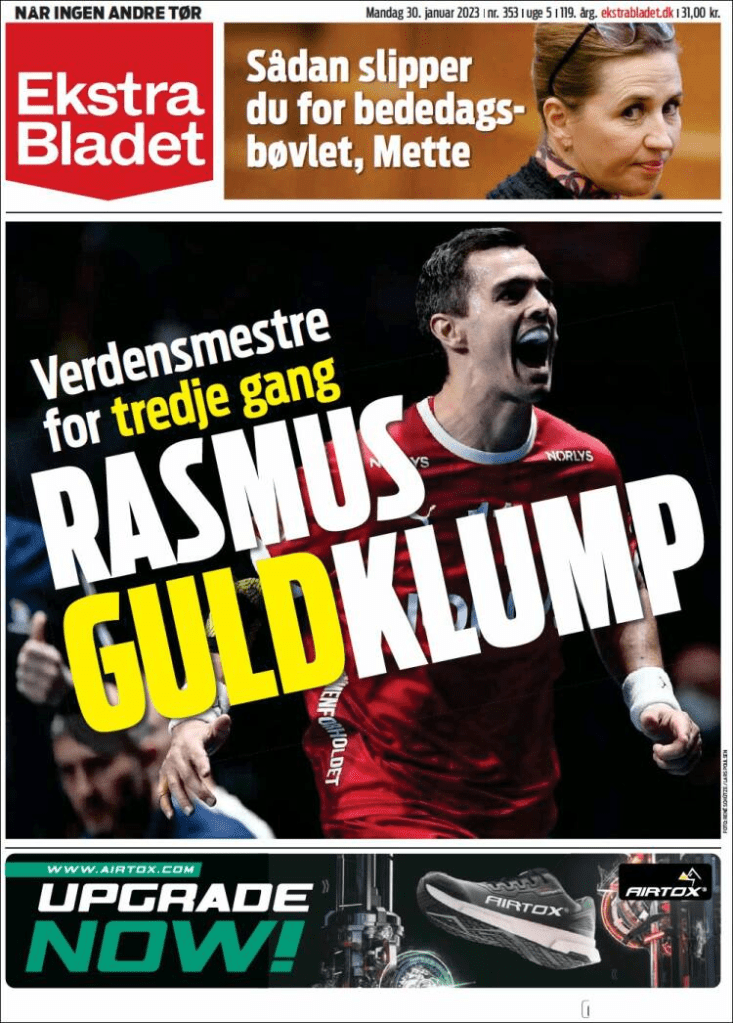 O „Ekstra Bladet“ dienraštis būtent R.Laugės nuotrauką pirmadienį išspausdino pirmajame puslapyje. „Rasmusas – aukso grynuolis“, – šalia triumfuojančio rankininko atvaizdo parašė „Ekstra Bladet“.