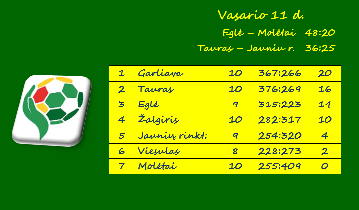 Šeštadienį Vilniuje įvyko dvejos Lietuvos moterų rankinio lygos rungtynės, kuriose pergales pasiekė sostinės komandos. „Eglė“ rekordiniu skirtumu 48:20 (22:6) nugalėjo „Molėtus“, o po pertraukos apsukas padidinęs „Tauras“ įveikė Lietuvos jaunių rinktinę 36:25 (18:16).