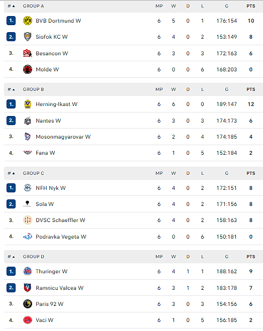 Moterų rankinio Europos lygos turnyre baigėsi grupių etapas ir paaiškėjo aštuonios komandos, kurios žais ketvirtfinalyje.