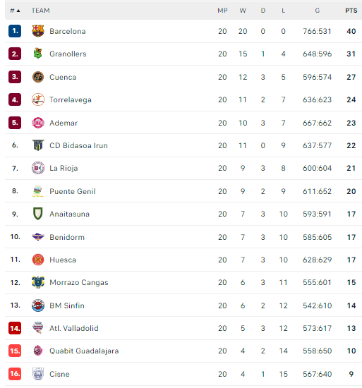 Pirmauja: „Barcelona“ – 40, „Fraikin“ – 31, „Cuenca“ – 27, „Torrelavega“ – 24, „Ademar“ – 23, „Bidasoa“ – 22.