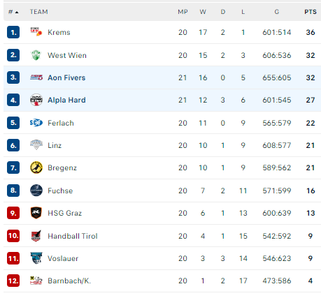 Nors Hardo rankininkai antrajame kėlinyje sumažino atsilikimą nuo aštuonių (10:18) iki vieno įvarčio (22:23), jiems nepavyko iškovoti nė vieno taško. Po šių rungtynių paaiškėjo, kad „Alpla“ reguliariajame sezone, iki kurio pabaigos liko vienas turas, užims ketvirtąją vietą.