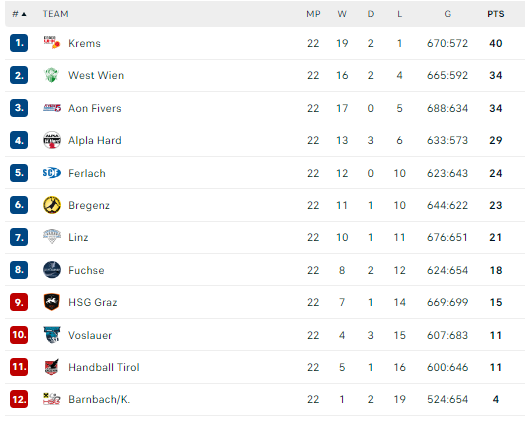 Šeštadienį baigėsi Austrijos lygos reguliarusis sezonas. Dar prieš paskutiniąsias rungtynes buvo aišku, kad reguliariojo sezono nugalėtoja taps „Krems“ komanda, kurioje žaidžia Romas Kirveliavičius, o Hardo „Alpla“, kuriai atstovauja Karolis Antanavičius, buvo užsitikrinusi ketvirtąją vietą.