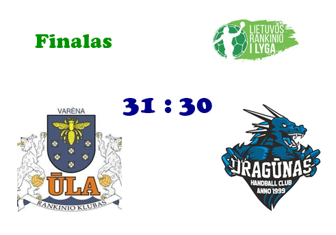 Lietuvos vyrų rankinio pirmosios lygos čempione tapo Varėnos „Ūla“. Sekmadienį Varėnoje vykusiose finalo rungtynėse „Ūlos“ rankininkai įveikė Klaipėdos „Dragūno“ antrąją komandą 31:30 (17:19). Geriausiu nugalėtojų komandos žaidėju išrinktas vartininkas Erikas Kaupinis.