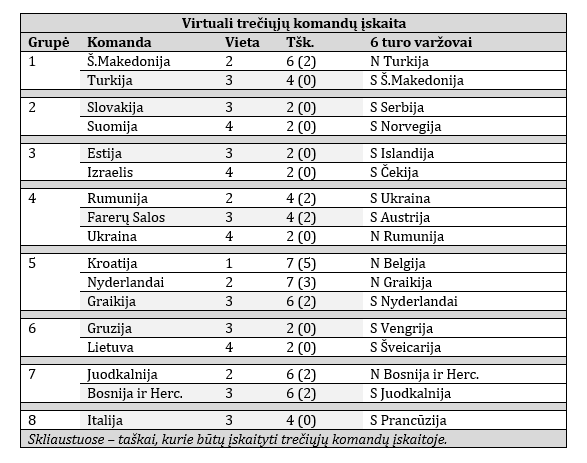 Jei ši užduotis būtų įvykdyta, Lietuvos rinktinės konkurentėmis taptų kitų grupių trečiosios komandos. Pagal patį palankiausią scenarijų, lietuviams gali užtekti vieno taško.