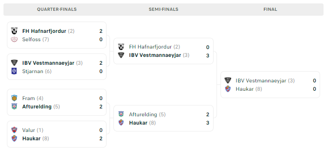 Reguliariajame sezone vos aštuntąją vietą užėmęs „Haukar“ laimėjo epinę pusfinalio seriją ir pateko į finalą, kuriame susitiks su Vestmanajaro IBV.