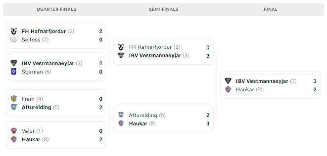 „Haukar“ per atkrintamąsias varžybas sukėlė didelį sąmyšį. Ši komanda reguliariajame sezone užėmė tik aštuntąją vietą ir vos pateko į atkrintamąsias varžybas. Tačiau ketvirtfinalyje „Haukar“ parbloškė čempiono vardą gynusį Reikjaviko „Valur“ klubą 2:0, po to dramatiškoje pusfinalio serijoje įveikė „Afturelding“ rankininkus 3:2 ir sukūrė dar vieną didelę dramą finale.