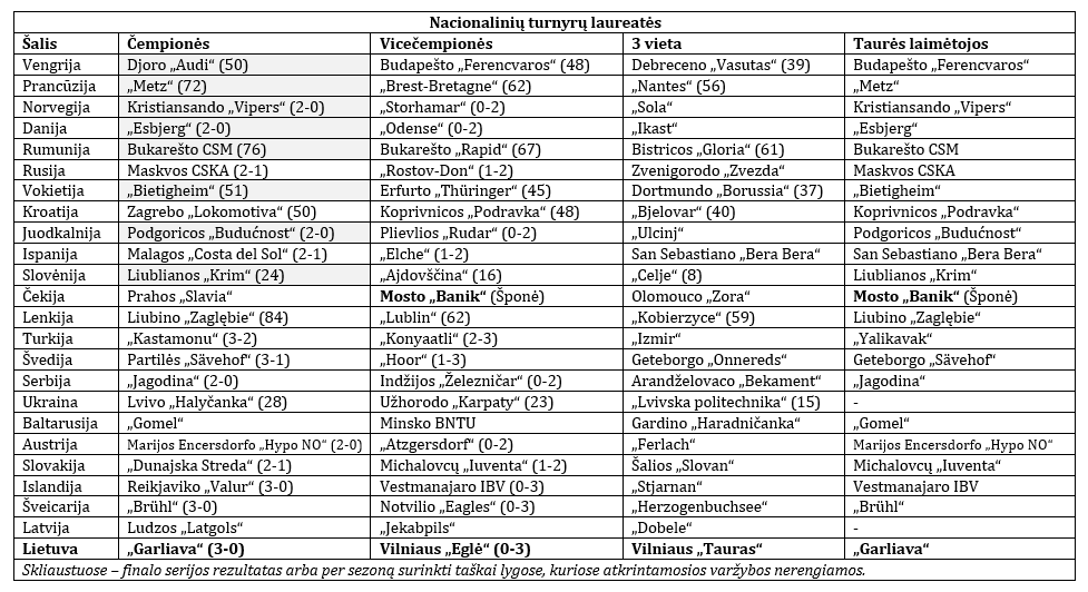 EHF reitinge daugiausiai taškų turi Vengrijos lyga. Šios šalies pirmenybių aukštą lygį patvirtina tai, kad dvi stipriausios Vengrijos komandos Djoro „Audi“ ir Budapešto „Ferencvaros“ pateko į Čempionių lygos finalo ketvertą.