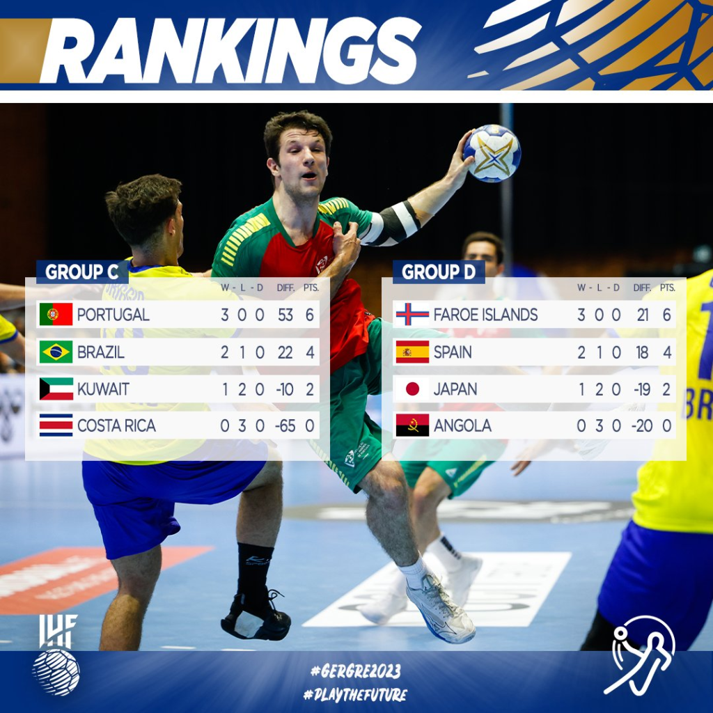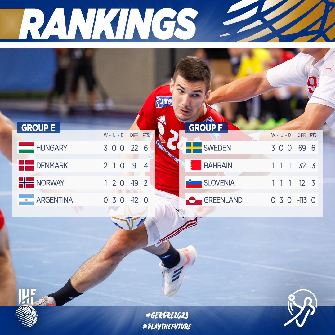 Pirmajame etape po tris pergales iškovojo ir nė taško neprarado Vokietijos, Portugalijos, Farerų Salų, Vengrijos, Švedijos, Islandijos ir Egipto rinktinės.