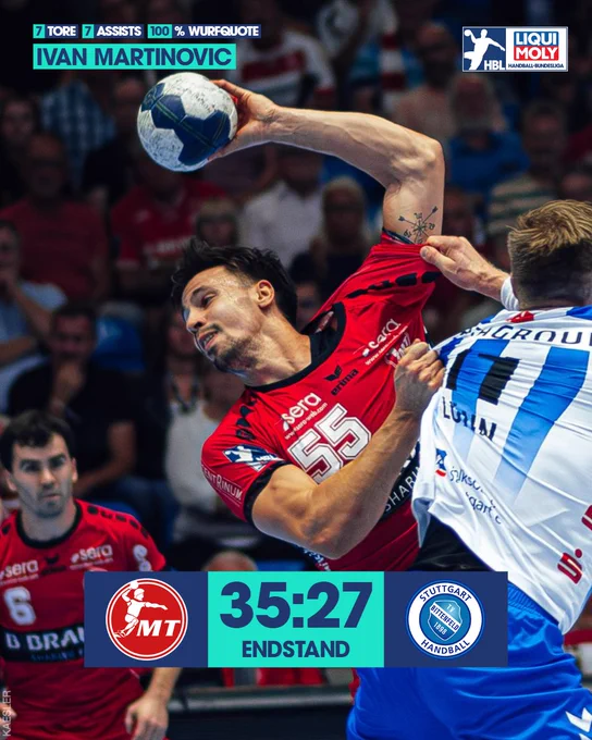 „Melsungen“ – „Stuttgart“ 35:27 (23:13). Martinovičius 7 / Hanuszas 5, … Truchanovičius 0. 3205 žr.