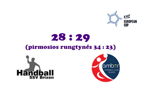 Vilniaus „Amber“ rankininkai pasiekė pirmąją europinę pergalę, bet laimėjo per mažu skirtumu ir iškrito iš Europos taurės turnyro. Pirmą kartą Europos rankinio federacijos (EHF) turnyre dalyvavęs „Amber“ šeštadienį Europos taurės pirmojo etapo atsakomosiose rungtynėse nugalėjo „Brixen“ klubą 29:28 (13:18).