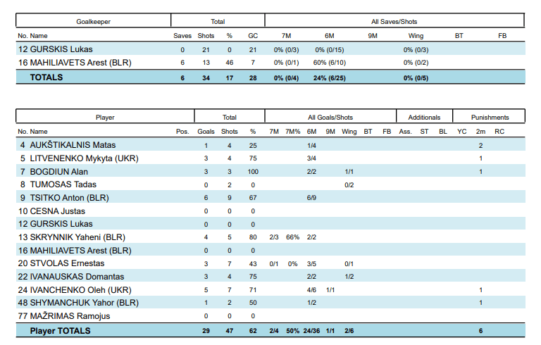 Beje, Baltarusijos ir Ukrainos rankininkai šeštadienį pelnė net 19 iš 29 „Amber“ įvarčių.