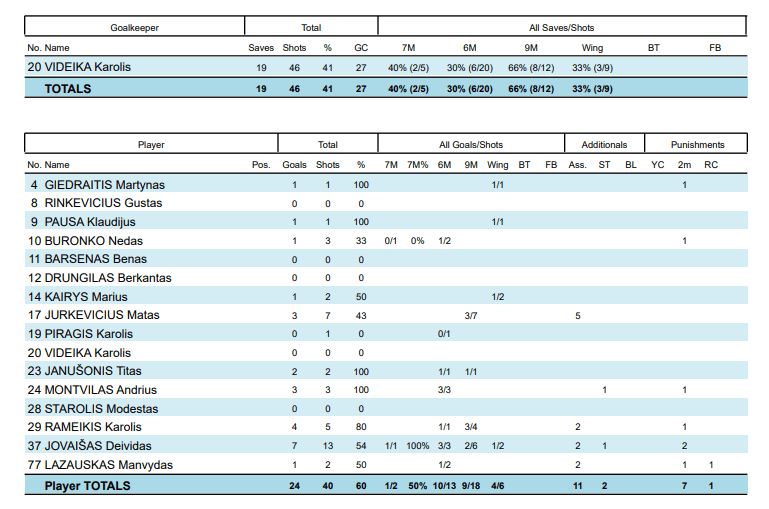 „Valur“: Sigurdssonas 4, Thordarssonas 4, Gustafssonas 4, Nordbergas 4. Raudona kortelė – Gislasonas.
