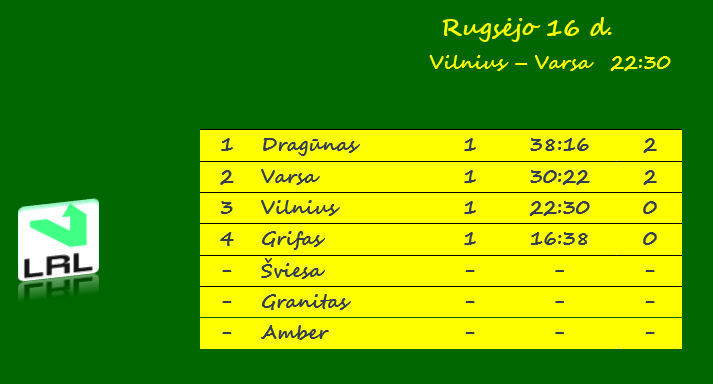 Kitos LRL rungtynės vyks trečiadienį (rugsėjo 20 d.). Panevėžio „Grifas“ priims Vilniaus „Šviesą“, Vilniaus „Amber“ – Klaipėdos „Dragūną“, „Vilnius“ – Kauno „Granitą“.
