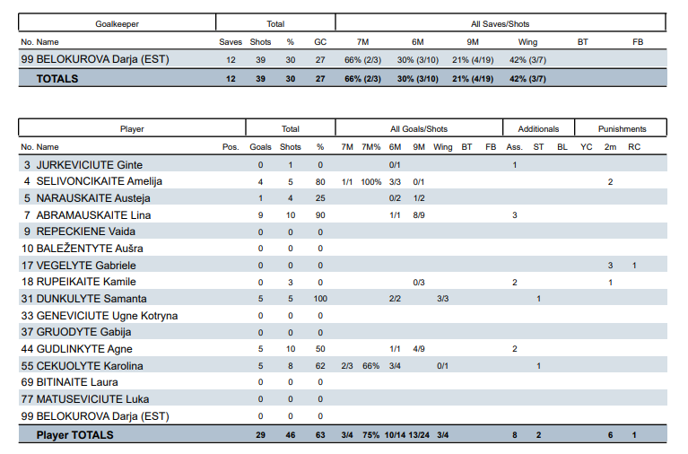 „Žalgiris“: Abramauskaitė 9, Dunkulytė 5, Gudlinkytė 5, Čekuolytė 5, Selivončikaitė 4, Narauskaitė 1.