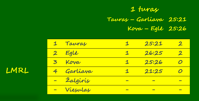 | Įvarčiai | 12 – Pilikauskaitė, Tauras (su Garliava), Kolosovė, Kova (su Egle) | 12 – Pilikauskaitė, Tauras (su Garliava), Kolosovė, Kova (su Egle) |