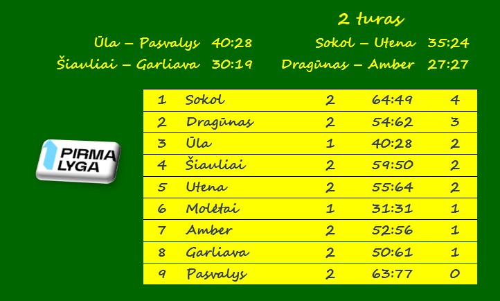Šalčininkų „Sokol“ – „Utena“ 35:24 (15:9). Girdzijevskis 7, Žukovskis 6, Gaidukas 6 / Zabulis 7, Sokolovas 5, Kas.Ubeika 5.