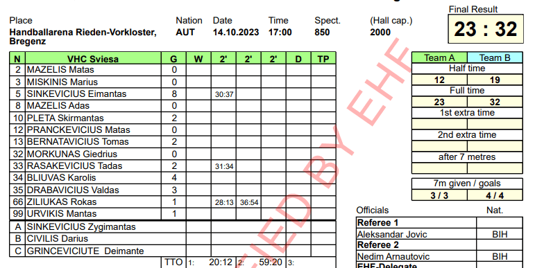 „Bregenz“ – Vilniaus „Šviesa“ 32:23 (19:12).