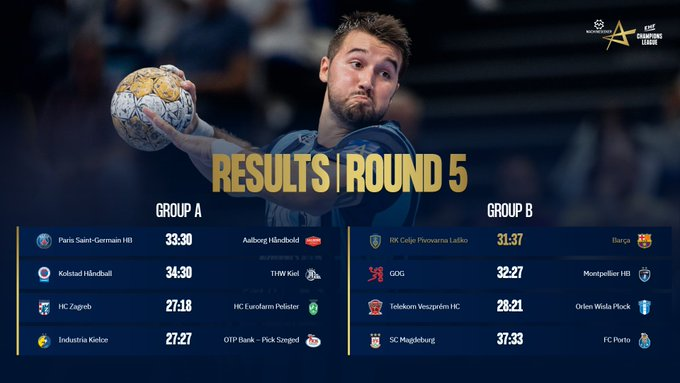 Per penkis turus Čempionų lygoje taškų neprarado tik B grupės lyderė, visas penkerias rungtynes laimėjusi „Barcelona“. Tuo tarpu taškų neiškovojo net trys komandos: Bitolos „Pelister“ (A grupė), „Wisła“ ir „Celje“ (B grupė).