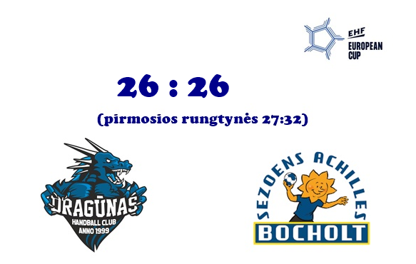 „Dragūnas“ šeštadienį Europos taurės antrojo etapo atsakomosiose rungtynėse namie pirmavo reikiamu penkių įvarčių skirtumu, bet pranašumo neišsaugojo ir su „Achilles“ sužaidė lygiosiomis 26:26 (16:14). Praėjusią savaitę „Dragūnas“ pirmąsias rungtynes išvykoje pralaimėjo 27:32.