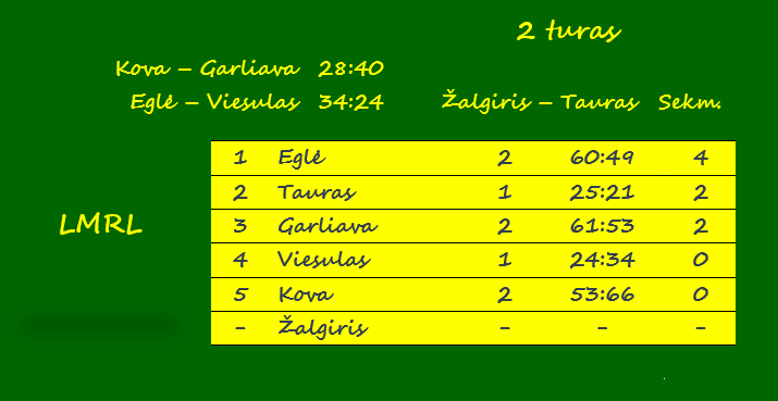 | Didžiausias skirtumas | 12 – Garliava (su Kova) | 12 – Garliava (su Kova) |