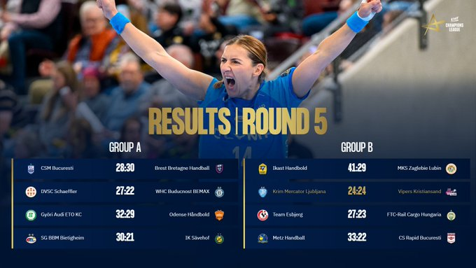 Moterų rankinio Čempionių lygos penktajame ture pergalių virtines pratęsė visos lyderės. Penktąsias pergales pasiekė Djoro „Audi“, „Bietigheim“ ir „Ikast“ komandos.