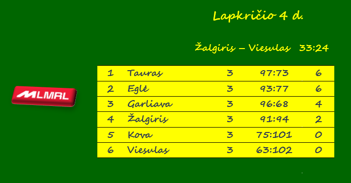 | Didžiausias skirtumas | 20 – Garliava (su Viesulu) |