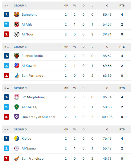 Lentelė: „Barcelona“ – 4, „Al Ahly“ – 2, „Al Noor“ – 0.