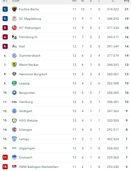 Pirmauja: „Bietigheim“ – 18, „Hamm“ – 16, „Potsdam“ – 15, „Nordhorn“, „Elbflorenz“ – po 14, „N-Lübbecke“ – 13.
