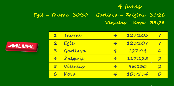 Abi Vilniaus komandos žengia be pralaimėjimų. „Eglė“ ir „Tauras“ iškovojo po 7 taškus ir dalijasi pirmąją vietą.