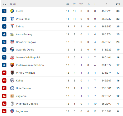 Pirmauja: „Kielce“, „Wisła“ – po 33, „Górnik“, „Azoty“ – po 25, „Chrobry“ – 24, „Gwardia“ – 19.