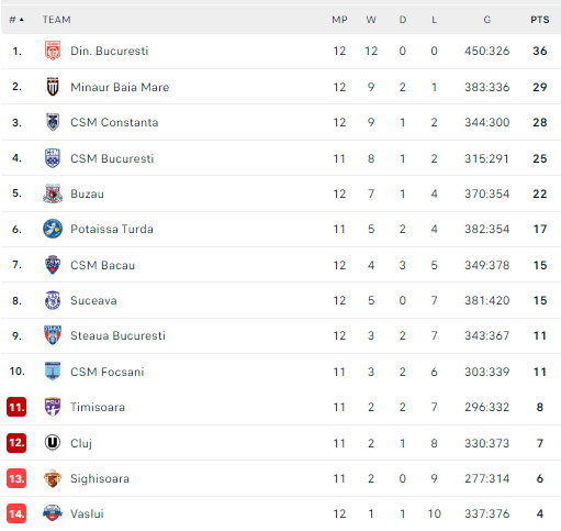 Pirmauja: „Dinamo“ – 36, „Minaur“ – 29, „Constanța“ – 28, Bukarešto CSM – 25, „Buzău“ – 22, „Potaissa“ – 17, „Bacău“ – 15.