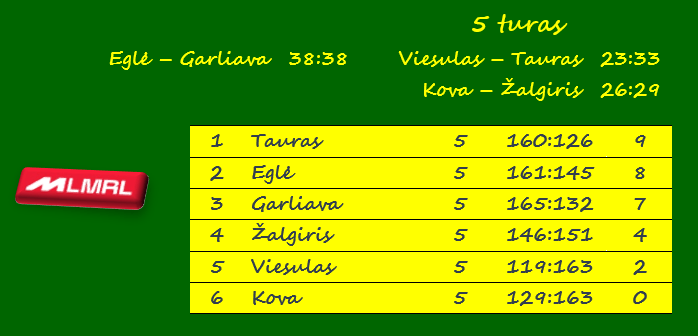 „Tauras“ per pirmąjį ratą iškovojo 9 taškus. „Eglė“ atsilieka vienu tašku, „Garliava“ – dviem.