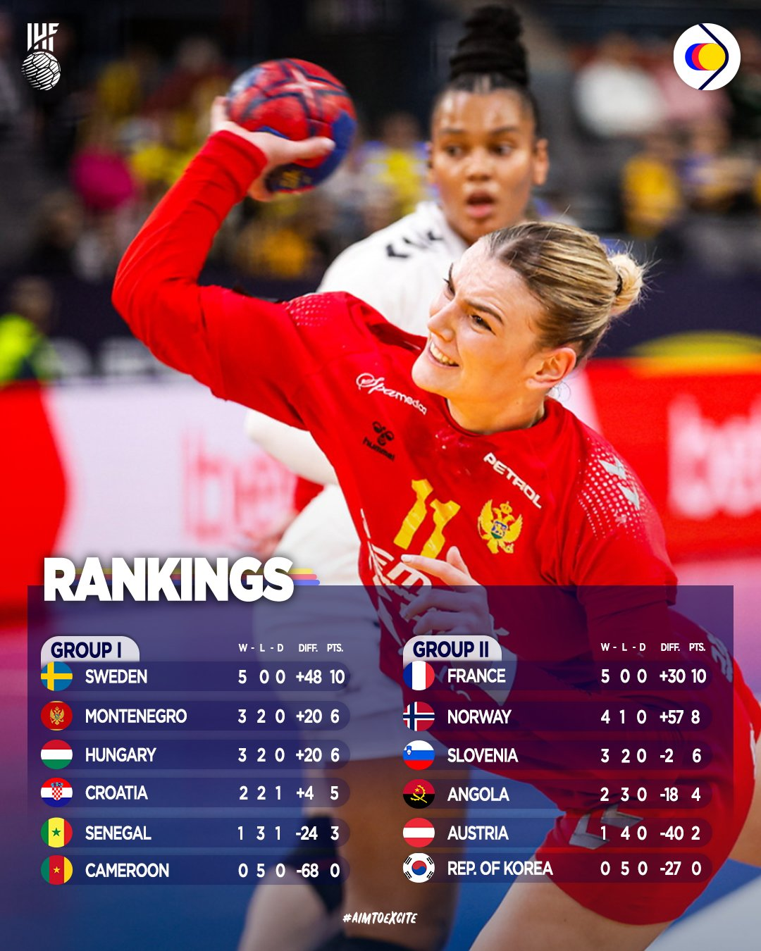Prancūzija – 10, Norvegija – 8, Slovėnija – 6, Angola – 4, Austrija – 2, Korėja – 0.