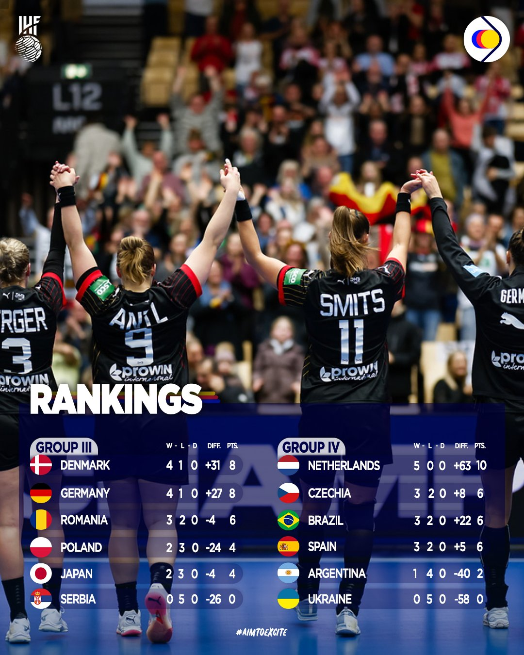 Vis dėlto japonėms ši pergalė nepadėjo patekti į ketvirtfinalį. Kitose rungtynėse Tekančios saulės šalies rankininkės nusileido ne tik favoritėms vokietėms, bet ir įveikiamoms Rumunijos bei Lenkijos komandoms. Namie žaidžiančios danės galėjo lengviau atsikvėpti – jos dar prieš paskutinįjį antrojo etapo turą užsitikrino teisę žaisti ketvirtfinalyje. Rungtynėse dėl pirmosios vietos III grupėje danės nugalėjo vokietes (abi komandos iškovojo po 8 taškus).