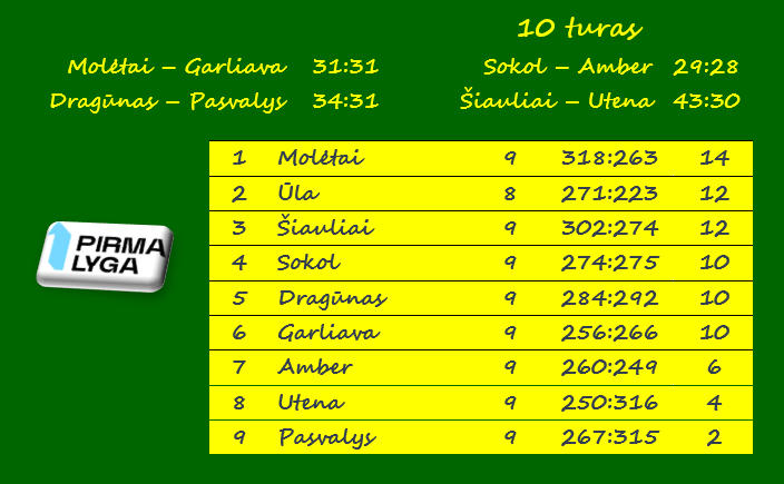 „Molėtai“ – „Garliava“ 31:31 (14:14).Agurkis 7, Dikas 6 / Boguševičius 11, Rameikis 6, Pilypas 5.