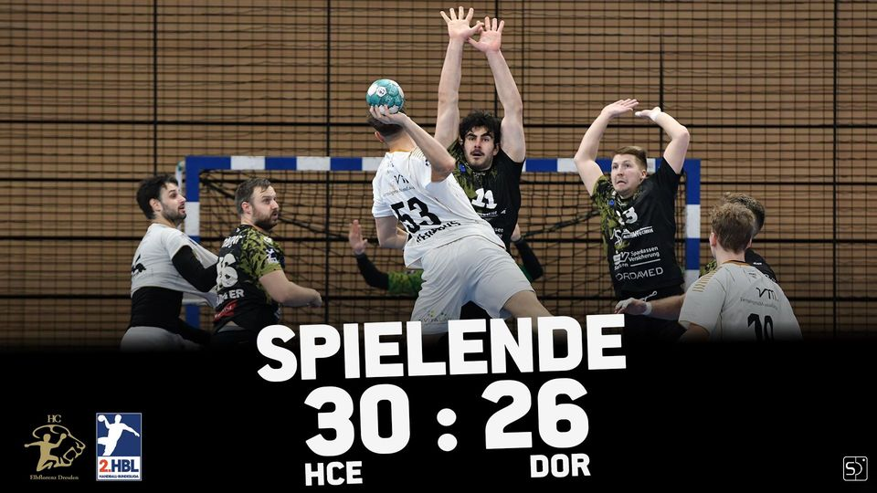 Nors „Elbflorenz“ varžovai buvo daug silpnesni, Drezdeno sirgaliams irgi teko pasijaudinti. „Elbflorenz“ antrojo kėlinio viduryje atsiliko 20:23 ir pranašumą įrodė tik paskutinėje mačo dalyje.